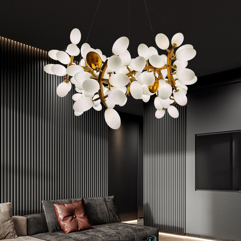Klosz z winogronowego szkła wykonany jest z wysokiej jakości szkła, o przejrzystym połysku, równomiernej transmisji światła, bezpieczeństwie i odporności na wybuch, odporności na wysokie temperatury, bionicznej sztuce winogron, formowaniu z wyraźną fakturą i realistycznym wyglądem;
