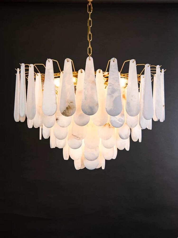 Invest in a timeless piece of art with this custom alabaster chandelier. This luxury pendant light is a unique ceiling decoration designed to elevate your living room. Unlike mass-produced fixtures, each chandelier is a bespoke creation, reflecting your individual style and taste.